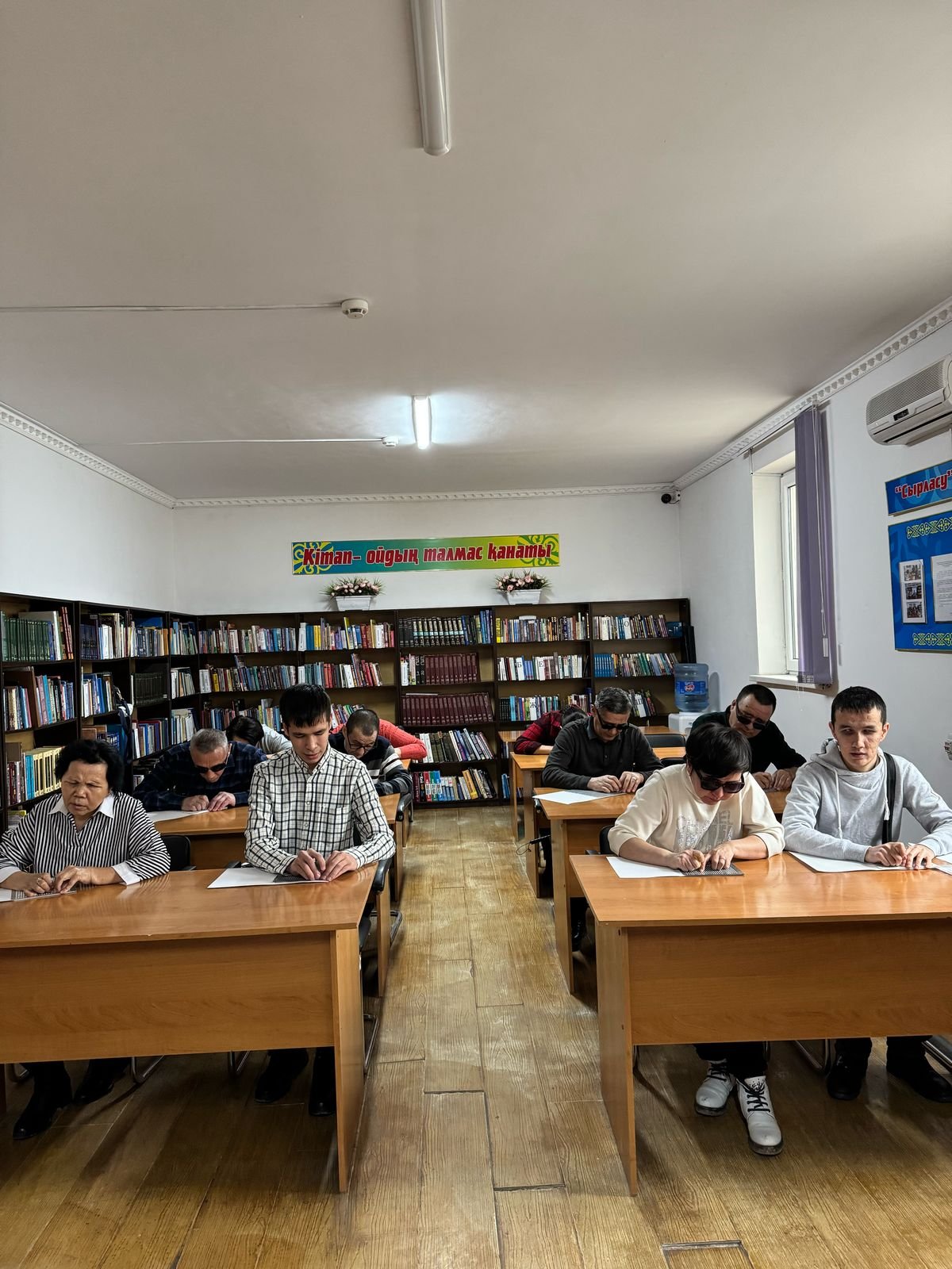 "Әлемді танытқан алты нүкте"Брайль қарпі – мүмкіндігі шектеулі жандарға арналған арнайы жазу жүйесі. Бұл әліпби көзі көрмейтін адамдарға жазу мен оқуға мүмкіндік береді. Бүгін зағип оқырмандардың қатысуымен «Бір ел – бір кітап» республикалық акциясы аясында Брайль жүйесі бойынша жазудан «Әлемді танытқан алды нүкте» атты сайыс І-ІІ топ көз мүгедектері арасында өтті. Сайыстың мақсаты зағип азаматтардың Брайль жүйесін игеруіне талпындыру, кітапханаға оқырмандарды баулу болып табылады. Сайысқа өздігінен үйренген І топ көз мүгедектері қатысты. Сайысқа қатысушылар Тәкен Әлімқұловтың «Саржайлау» әңгімесінен диктант жазды. Қазылық жасаған арнайы маман А.Нүрлиева мен З.Бисенова І орынды Ғалымжан Кенжебековке, ІІ орынды Жанар Ағыбаеваға, ІІІ орынды Құрманғазы Құлбаевқа тиесілі деп тапты. Жүлделі орынға ілінбеген оқырмандар да ынталандыру сыйлықтарымен марапатталды. Кітапхана директоры Бауыржан Мыңжасарұлы жеңімпаздарды марапаттап демеушілік жасаған «Жәудір» мүгедектер қоғамдық бірлестігінің төрайымы Абилова Гүлсім Серікбайқызына алғысын білдірді.